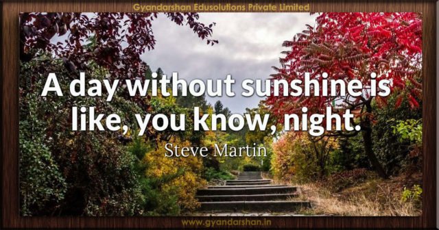 Home Educational Blogs Quotes A day without sunshine is like, you know, night. Steve Martin Educational BlogsQuotes A day without sunshine is like, you know, night. Steve Martin By Scientia Educare - September 22, 2017 891 0 FacebookTwitterPinterestWhatsApp