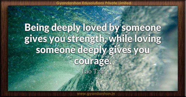 Home Educational Blogs Quotes Being deeply loved by someone gives you strength, while loving someone deeply... Educational BlogsQuotes Being deeply loved by someone gives you strength, while loving someone deeply gives you courage. Lao Tzu By Scientia Educare - October 10, 2017 1017 0 FacebookTwitterPinterestWhatsApp