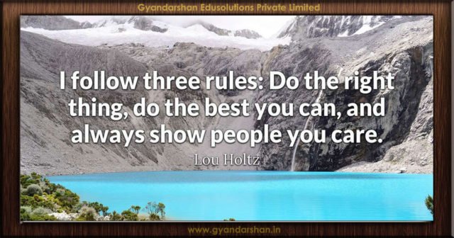 Home Educational Blogs Quotes I follow three rules: Do the right thing, do the best you... Educational BlogsQuotes I follow three rules: Do the right thing, do the best you can, and always show people you care. Lou Holtz By Scientia Educare - September 22, 2017 1281 0 FacebookTwitterPinterestWhatsApp