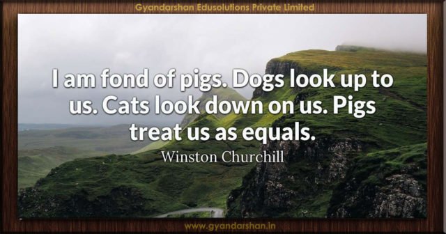 Home Educational Blogs Quotes I am fond of pigs. Dogs look up to us. Cats look... Educational BlogsQuotes I am fond of pigs. Dogs look up to us. Cats look down on us. Pigs treat us as equals. Winston Churchill By Scientia Educare - October 3, 2017 804 0 FacebookTwitterPinterestWhatsApp