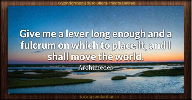 Home Educational Blogs Quotes Give me a lever long enough and a fulcrum on which to... Educational BlogsQuotes Give me a lever long enough and a fulcrum on which to place it, and I shall move the world. Archimedes By Scientia Educare - October 2, 2017 769 0 FacebookTwitterPinterestWhatsApp