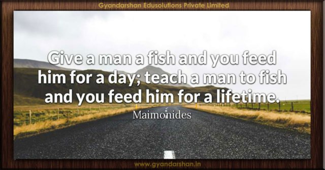 Home Educational Blogs Quotes Give a man a fish and you feed him for a day;... Educational BlogsQuotes Give a man a fish and you feed him for a day; teach a man to fish and you feed him for a lifetime. Maimonides By Scientia Educare - September 22, 2017 1051 0 FacebookTwitterPinterestWhatsApp