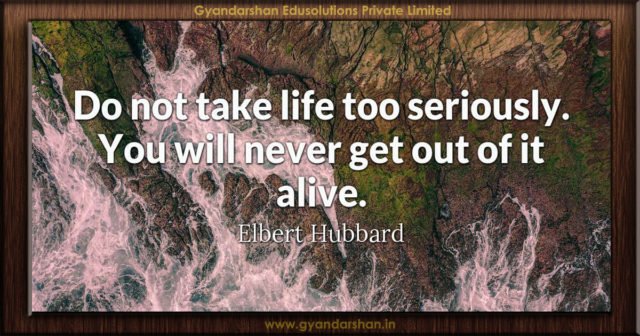 Home Educational Blogs Quotes Do not take life too seriously. You will never get out of... Educational BlogsQuotes Do not take life too seriously. You will never get out of it alive. Elbert Hubbard By Scientia Educare - September 19, 2017 817 0 FacebookTwitterPinterestWhatsApp