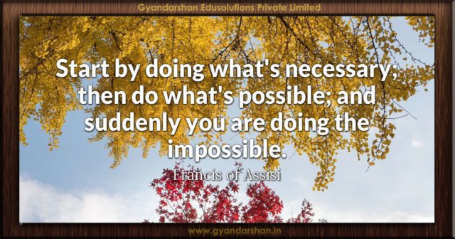 Home Educational Blogs Quotes Start by doing what’s necessary; then do what’s possible; and suddenly you... Educational BlogsQuotes Start by doing what’s necessary; then do what’s possible; and suddenly you are doing the impossible. Francis of Assisi By Scientia Educare - September 19, 2017 1027 0 FacebookTwitterPinterestWhatsApp