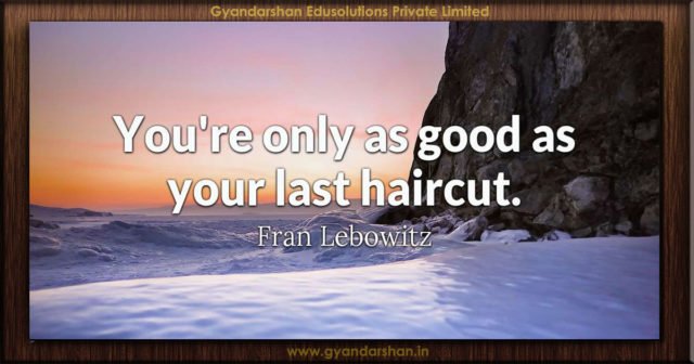 Home Educational Blogs Quotes You’re only as good as your last haircut. Fran Lebowitz Educational BlogsQuotes You’re only as good as your last haircut. Fran Lebowitz By Scientia Educare - October 5, 2017 844 0 FacebookTwitterPinterestWhatsApp